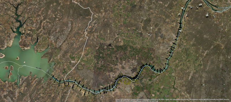 Levantamento de 75 seções transversais topobatimétricas no trecho entre a UHE de Sobradinho e o Município de Lagoa Grande/PE na Região do Submédio São Francisco, perfazendo aproximadamente 80km de extensão.