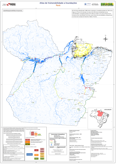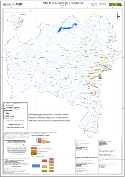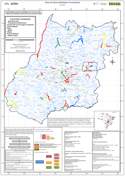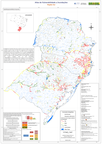Trechos de curso d'água inundáveis com os atributos de ottocodificação, frequência de ocorrência, grau de impacto e vulnerabilidade a inundações graduais.