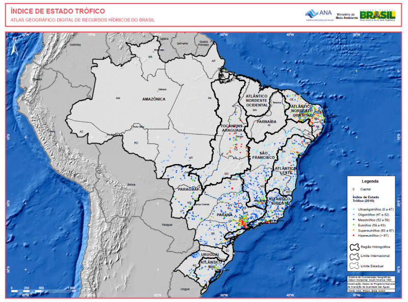 O Índice de Estado Trófico (IET), calculado com base no fósforo total monitorado, é utilizado para classificar corpos hídricos lóticos (rios e córregos) e lênticos (açudes, lagos e reservatórios) quanto ao potencial de ocorrência da eutrofização, em diferentes níveis de trofia.