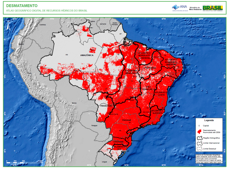 Os dados do desmatamento do bioma Amazônia são provenientes do Projeto Monitoramento da Floresta Amazônica Brasileira por Satélite (PRODES) do Instituto Nacional de Pesquisas Espaciais (INPE), que desde 1988 produz as taxas anuais de desflorestamento na Amazônia. O cálculo do total desmatado nos demais biomas foi produzido pelo Projeto de Monitoramento do Desmatamento dos Biomas Brasileiros por Satélite (PMDBBS), por meio da parceria entre o Programa das Nações Unidas para o Desenvolvimento (PNUD) e o Ministério do Meio Ambiente (MMA), ficando o Instituto Brasileiro do Meio Ambiente e dos Recursos Naturais Renováveis (IBAMA) responsável pela execução técnica do projeto.
