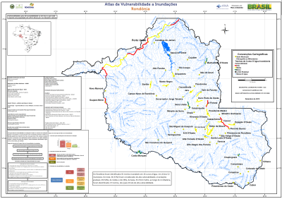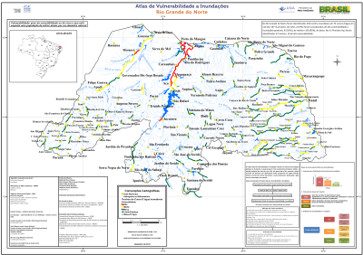 Trechos de curso d'água inundáveis com os atributos de ottocodificação, frequência de ocorrência, grau de impacto e vulnerabilidade a inundações graduais.